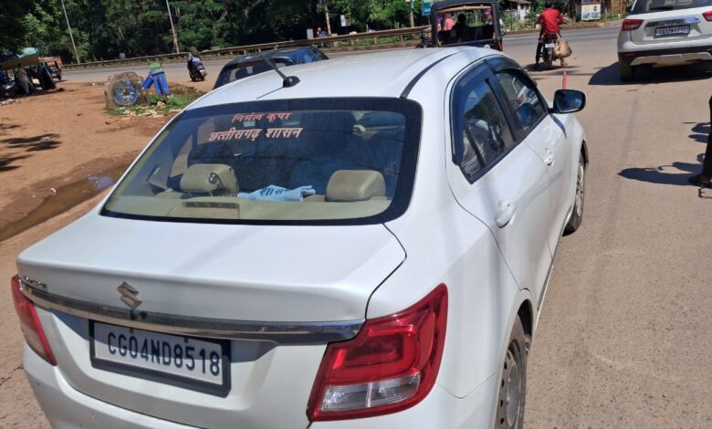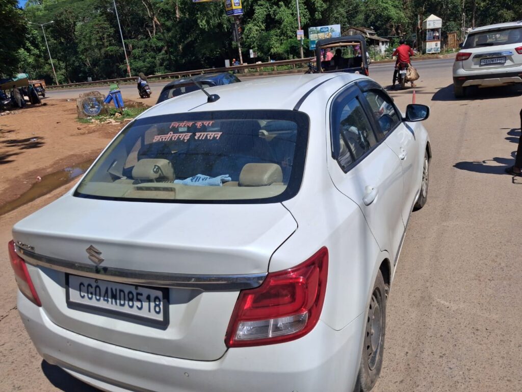 जगदलपुर (प्रभात क्रांति)। बस्तर मुख्यालय जगदलपुर शहर में इन दिनों एक अनोखी कार चर्चा का विषय बनी हुई है। रायपुर नंबर (CG 04 ND 8518) वाली इस SWIFT कार पर एक ओर “निर्मल कृपा” लिखा हुआ है, वहीं दूसरी ओर “छत्तीसगढ़ शासन” का अधिकृत स्टीकर भी चिपका हुआ देखा गया।