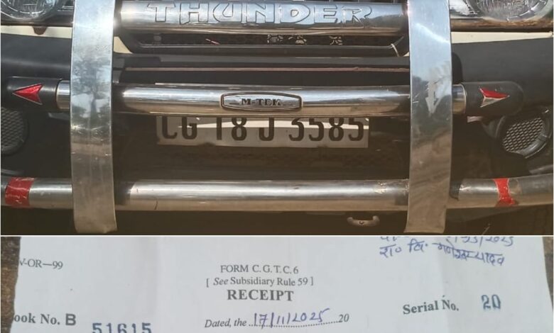 जांच के दौरान बुलेरो क्रमांक CG 18 J 3585 के चालक