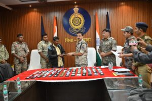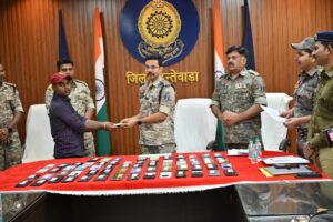 दंतेवाड़ा(प्रभात क्रांति) | दन्तेवाड़ा पुलिस के द्वारा आमजन को उनके गुम हुये मोबाईल को CEIR पोर्टल के माध्यम से तलाश कर ‘‘इया आपलो सामान निया’’ कार्यक्रम के द्वारा वापस किया गया। पुलिस अधीक्षक गौरव राय (भापुसे.) अतिरिक्त पुलिस अधीक्षक राम कुमार वर्मन (रा.पु.से.) एवं सायबर सेल नोडल अधिकारी उप पुलिस अधीक्षक ठाकुर गौरव सिंह के मार्गदर्शन में जिले में चलाये जा रहे गुम मोबाईल तलाश अभियान के तहत् आज दिनांक 31-12-2025 को कुल 70 मोबाईल जिनका अनुमानित कीमत लगभग 14,00,000 रूपये नागरिकों को वापस लौटाई गई।