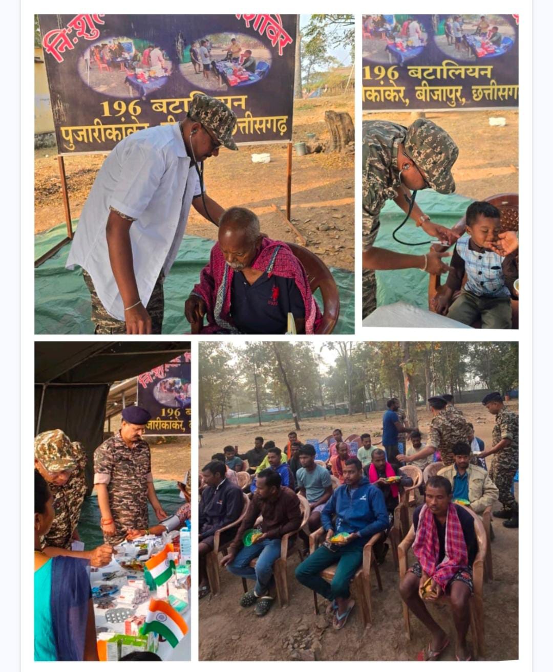 दिनांक 28/01/2026 को बीजापुर जिले के थाना उसूर के अंतर्गत अति नक्सल प्रभावित दूरस्थ क्षेत्र पूजारिकांकेर गांव के तमिलभट्टी पारा में 196 बटालियन के.रि.पु.बल के द्वारा हरीश कुमार, (सहा०कमा०), चिकित्साधिकारी