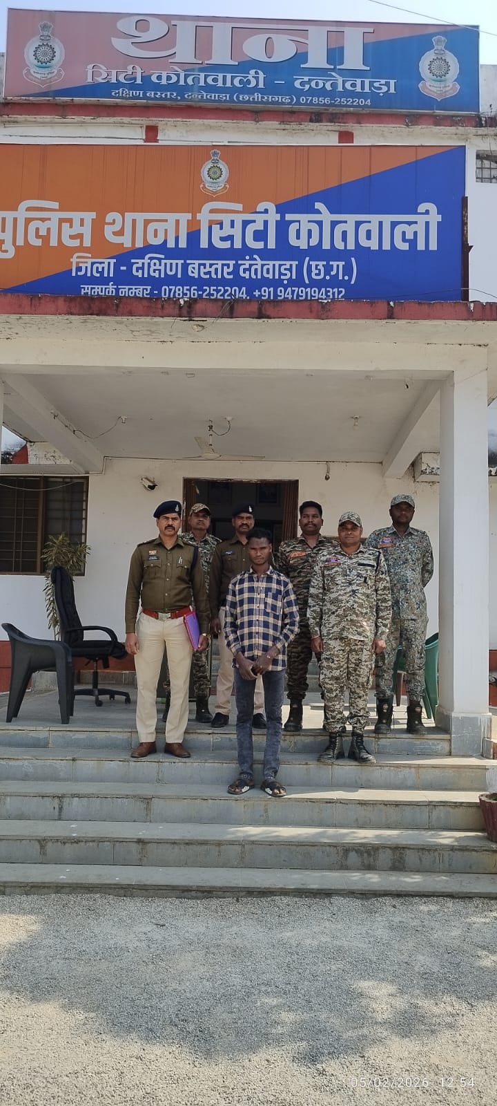 दंतेवाड़ा (प्रभात क्रांति) । पुलिस अधीक्षक गौरव राय (भापुसे) के निर्देशन, अतिरिक्त पुलिस अधीक्षक रामकुमार बर्मन (रापुसे) के मार्गदर्शन मे एवं पुलिस अनुविभागीय अधिकारी दन्तेवाड़ा राहुल उयके (रापुसे) के पर्यवेक्षण में एवं थाना प्रभारी सिटी कोतवाली दन्तेवाड़ा निरीक्षक धनंजय सिन्हा के नेतृत्व में जिले में हो रहे अपराधों एवं आरोपियो की गिरफ्तारी हेतु चलाये जा रहे अभियान के तहत दिनांक 04/02/2026 को दन्तेवाड़ा, कटेकल्याण पुलिस एवं डीआरजी दन्तेवाड़ा की संयुक्त टीम को हत्या के फरार आरोपी को गिरफ्तार करने में महत्वपूर्ण सफलता मिली है। दिनांक 03/02/2026 को जरिये मोबाईल सूचना मिली कि ग्राम पोन्दुम 2 में कोसा मण्डावी की हत्या हुई है की सूचना पर तत्काल दन्तेवाड़ा पुलिस एवं फारेंसिक टीम द्वारा मौके पर जाकर निरीक्षण किया गया, कोसा मण्डावी उम्र 50 वर्ष निवासी पोन्दुम 2 गोटखुटापारा का शव उसके घर के आंगन में खून से लथपथ पड़ा हुआ मिला।