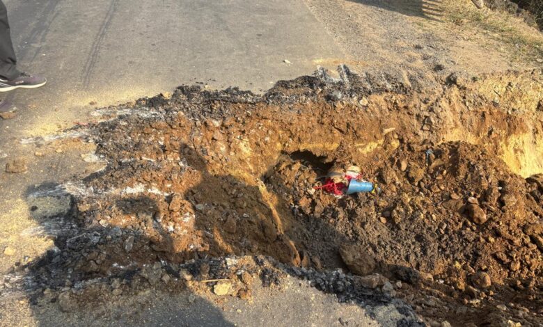 JCB की मदद से सड़क को भरा गया और ट्रैफिक बहाल कर दिया गया। – किसी को कोई नुकसान या चोट नहीं आई है।