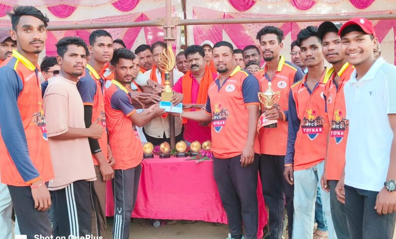 कप मुख्य अतिथि सरपंच बी.आर. तेलम, महेश चापड़ी, गंगाधर मांझी, द्वारा पुरस्कार प्रदान किया गया आयोजन में लखमू तेलम, विजय तांबोली, रोहित यादव, मोहन तेलम, महेश कुरसम, अर्जुन प्रधान, राजू त लांडी, एवं सभी नवयुवक एवं ग्रामीणों का सहयोग रहा मैन आफ द सीरीज सोनू गावडे एवं बेस्ट बेट्स मेन आश्विन तेलम रहे ।
