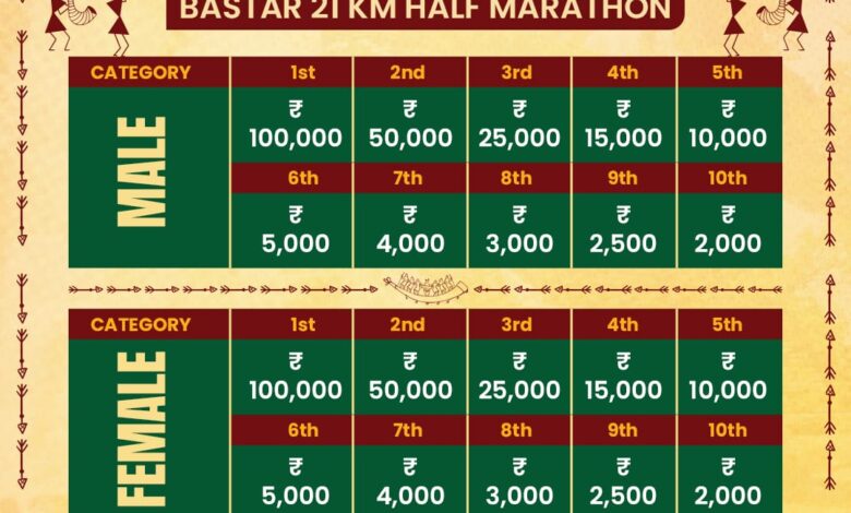 पुरस्कारों का यह सिलसिला यहीं नहीं थमता, बल्कि 21 किलोमीटर की हाफ मैराथन में भी जीत का जुनून दोगुना करने के लिए प्रथम पुरस्कार के रूप में 1,00,000 (एक लाख) रुपये की राशि तय की गई है। इसमें भी द्वितीय विजेता को 50,000 और तृतीय को 25,000 रुपये प्रदान किए जाएंगे। स्थानीय प्रतिभाओं को प्रोत्साहित करने के उद्देश्य से प्रशासन ने ओपन कैटेगरी के समान ही बस्तर कैटेगरी के लिए भी अलग से समान पुरस्कार राशि का प्रावधान किया है, जिससे बस्तर के युवाओं को अपनी मिट्टी पर ही राष्ट्रीय स्तर का सम्मान और आर्थिक प्रोत्साहन प्राप्त हो सके।