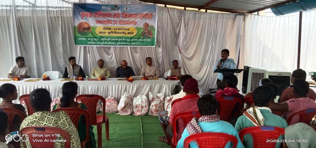 कृषि विज्ञान केंद्र, बस्तर में जनजातीय उप-योजना अंतर्गत भारतीय कृषि अनुसंधान परिषद- राष्ट्रीय कृषि उपयोगी सूक्ष्मजीव ब्यूरो, मऊ (उ.प्र.) के सौजन्य से एक दिवसीय प्रशिक्षण कार्यक्रम सह कृषक गोष्ठी का आयोजन दिनांक 24.03.2026 किया गया।